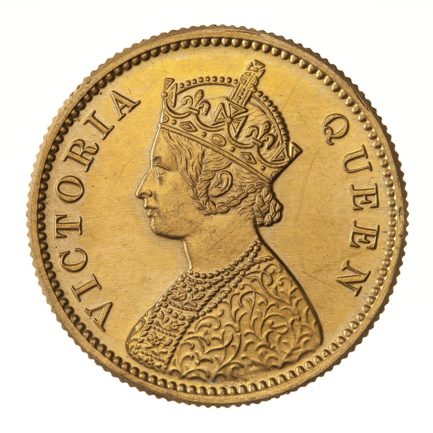 Crowned and robed bust of the queen facing left; around VICTORIA QUEEN