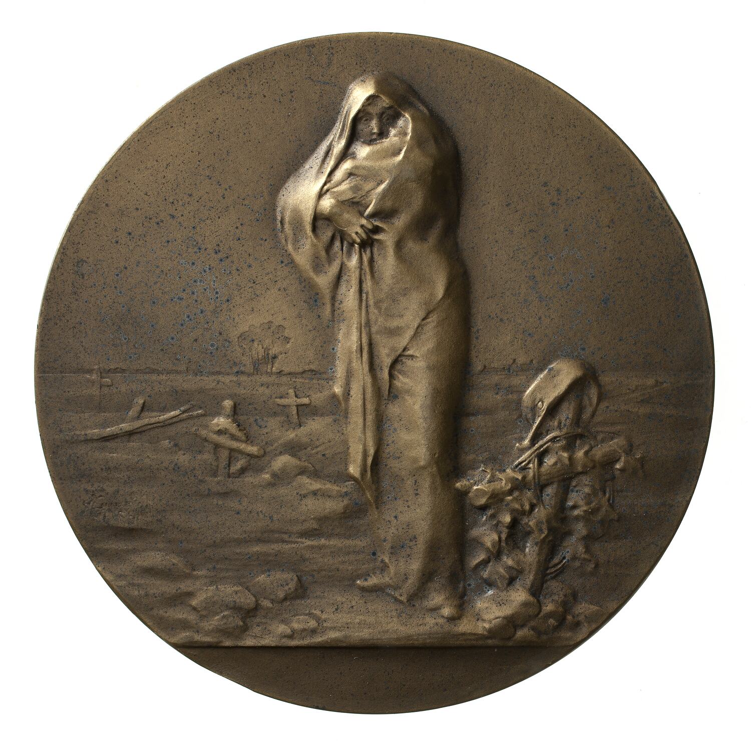 Medal L'Oeuvre des Barbares (The Work of the Barbarians) designed by Marcelle Renee Lancelot-Croce, issued in France, circa 1916.