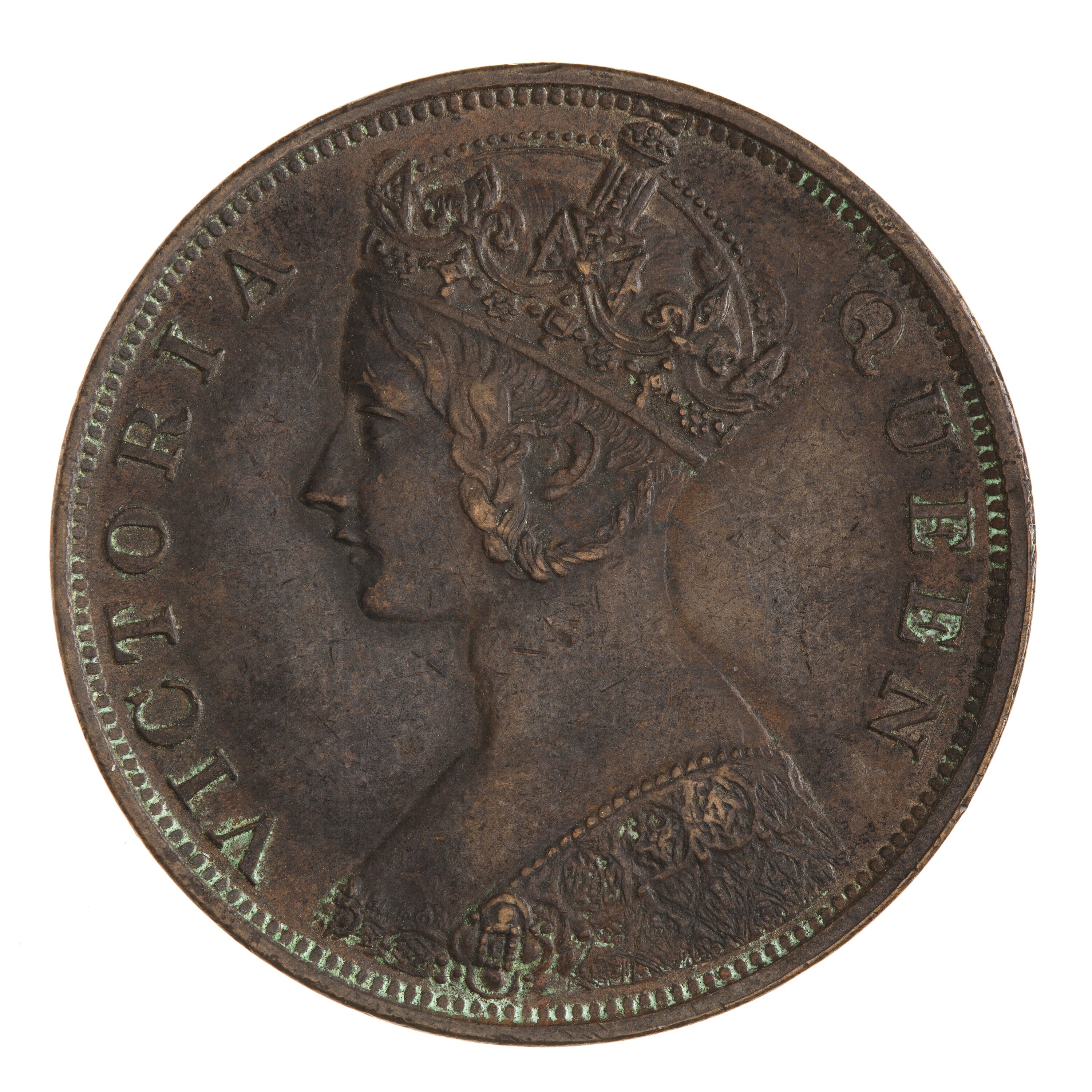 Crowned bust of the Queen wearing ornamental bodice facing left; around VICTORIA QUEEN