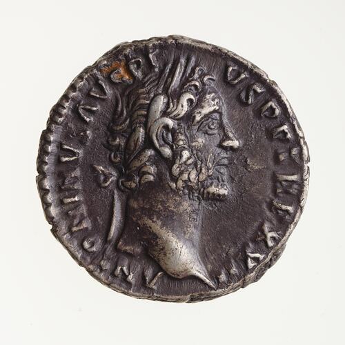 Laureate head of Antoninus Pius facing right; around, ANTONINVS AVG PIVS P P TR P XXII
