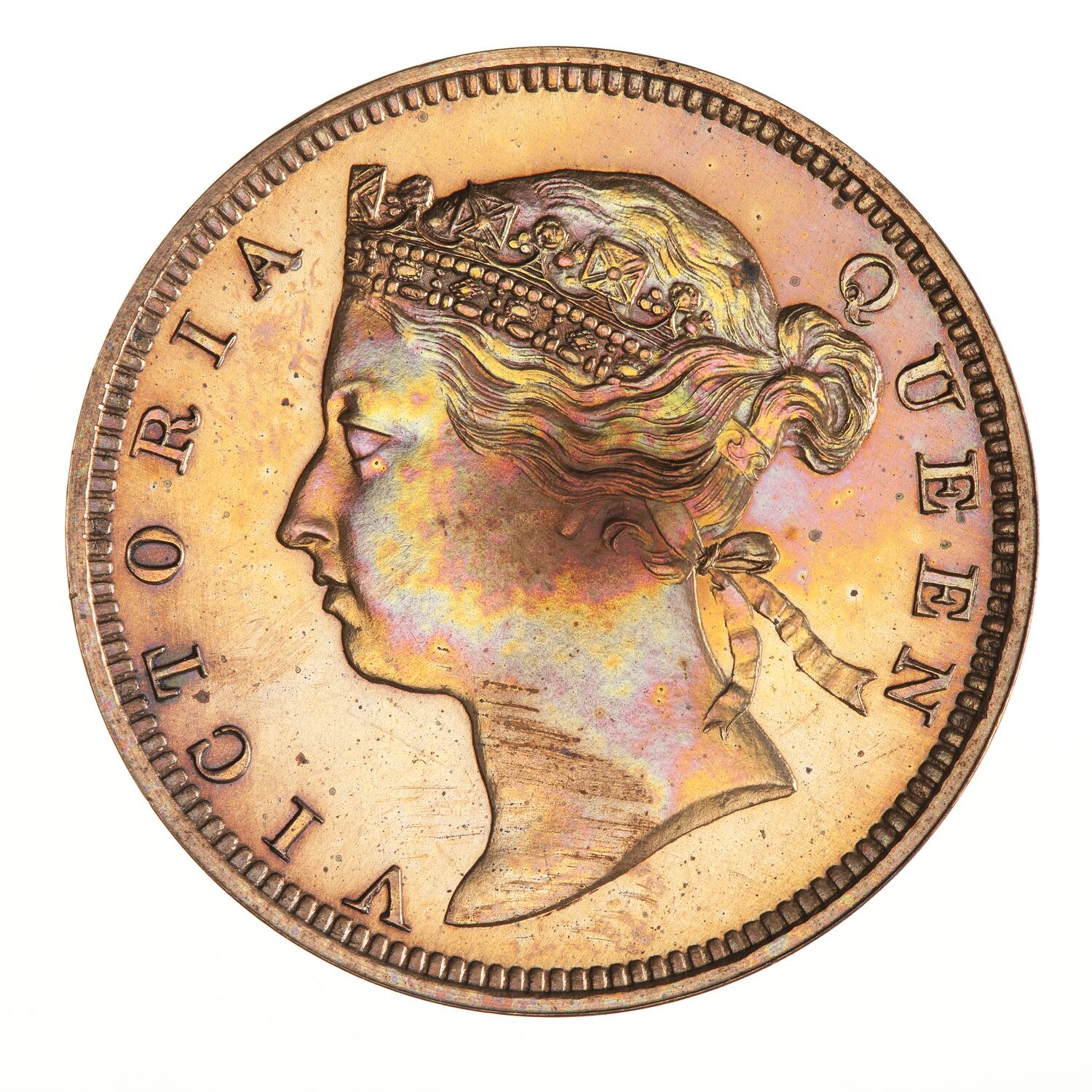 Diademed head of the queen facing left; around, VICTORIA QUEEN
