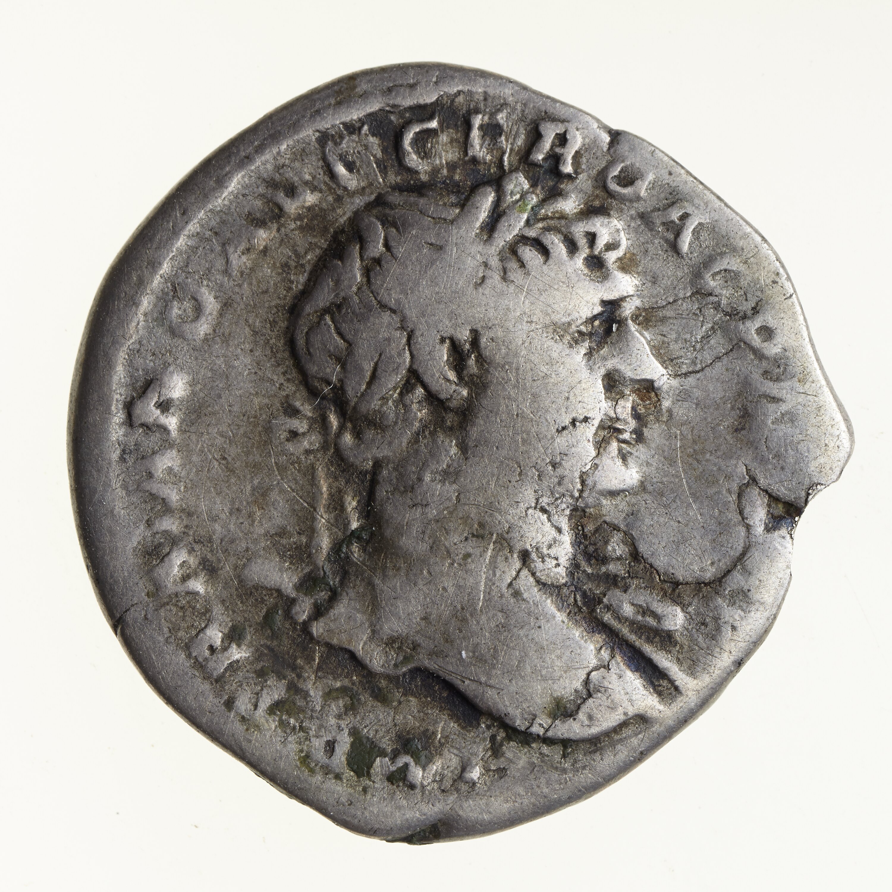 Laureate head of Trajan facing right, drapery on left shoulder; around, IMP TRAIANO AVG GER DAC PM [TR P]