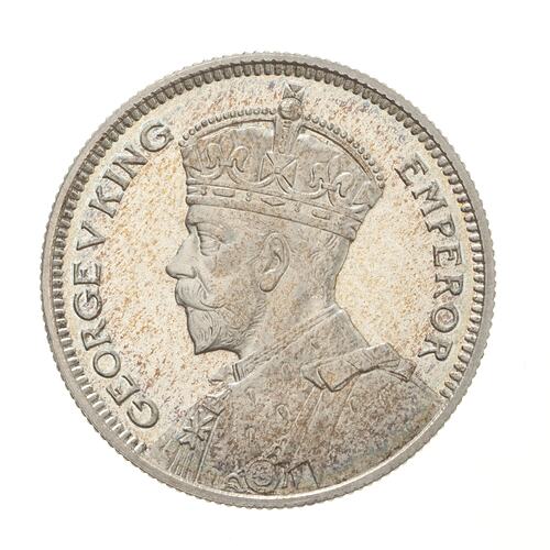 Crowned bust of the King facing left; around, GEORGE V KING EMPEROR