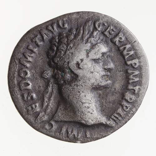 Laureate head of Domitian facing right; around, IMP CAES DOMIT AVG GERM P M TR P XII