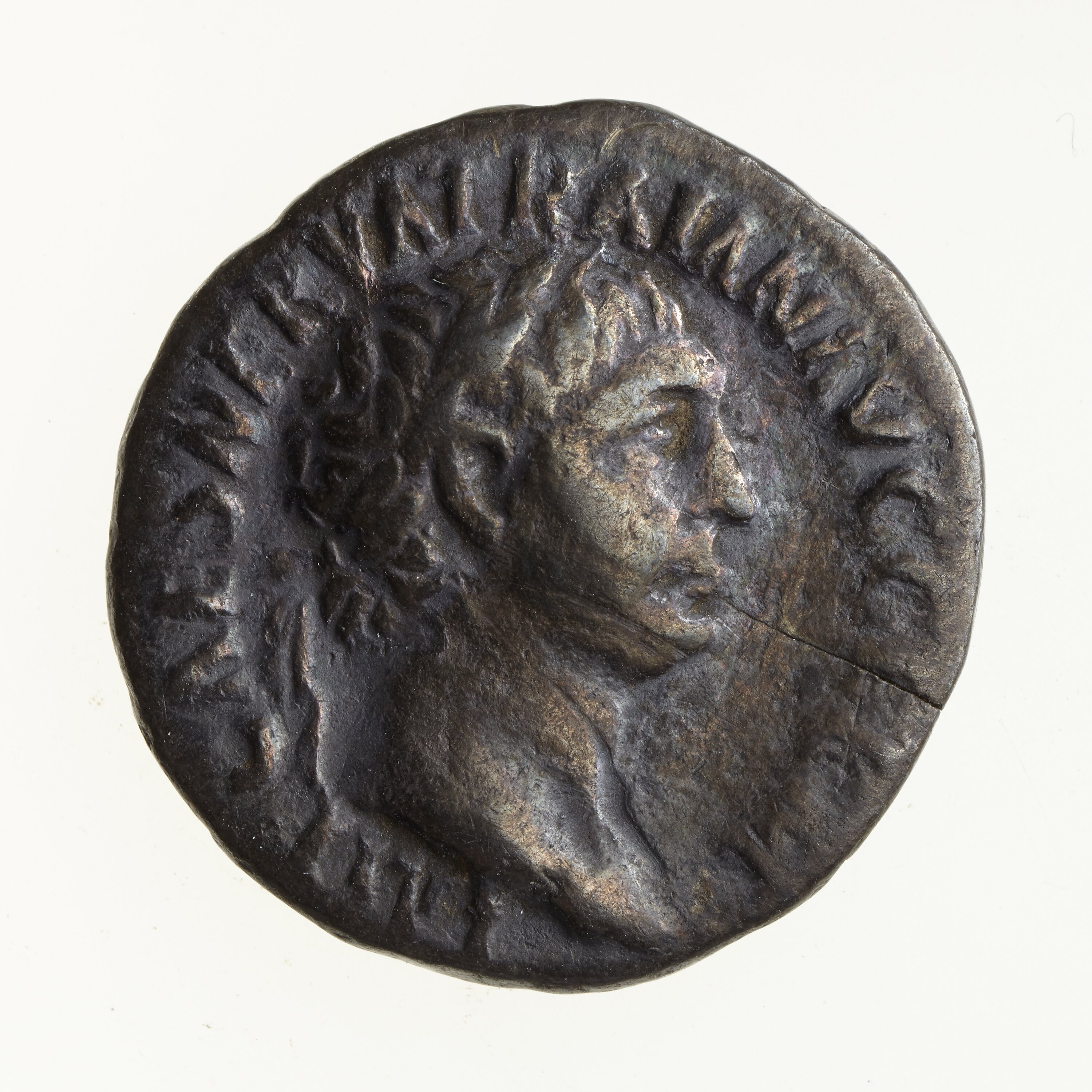 Laureate head of Trajan facing right; around, IMP CAES NERVA TRAIAN AVG GERM