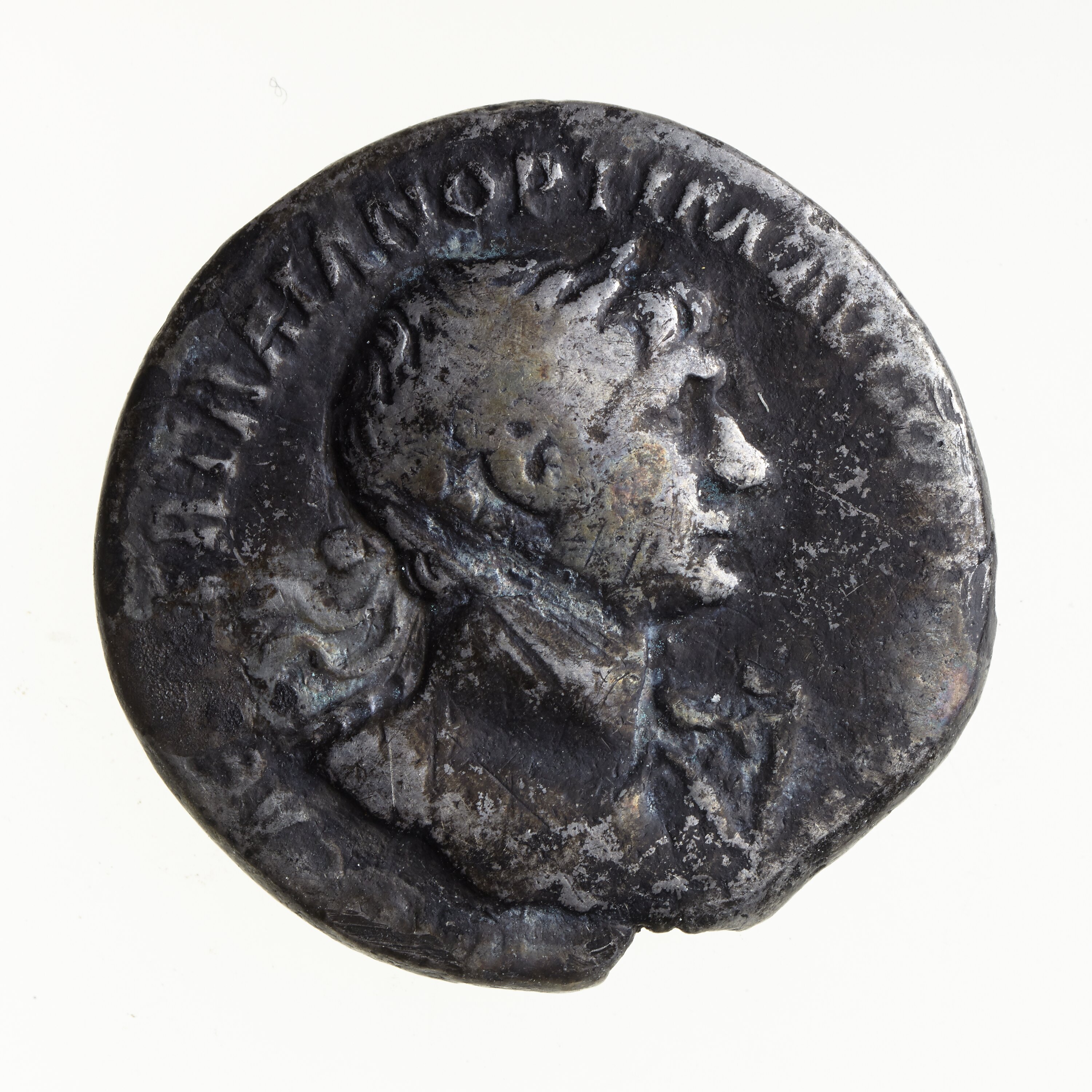 Laureate bust of Trajan facing right; around, IMP CAES NER TRAIAN OPTIM AVG G[ERM DAC]