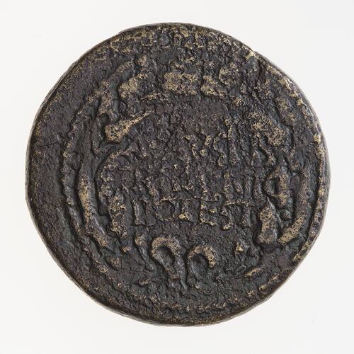 Within an oak wreath, AVGVSTVS / TRIBVNIC / POTEST