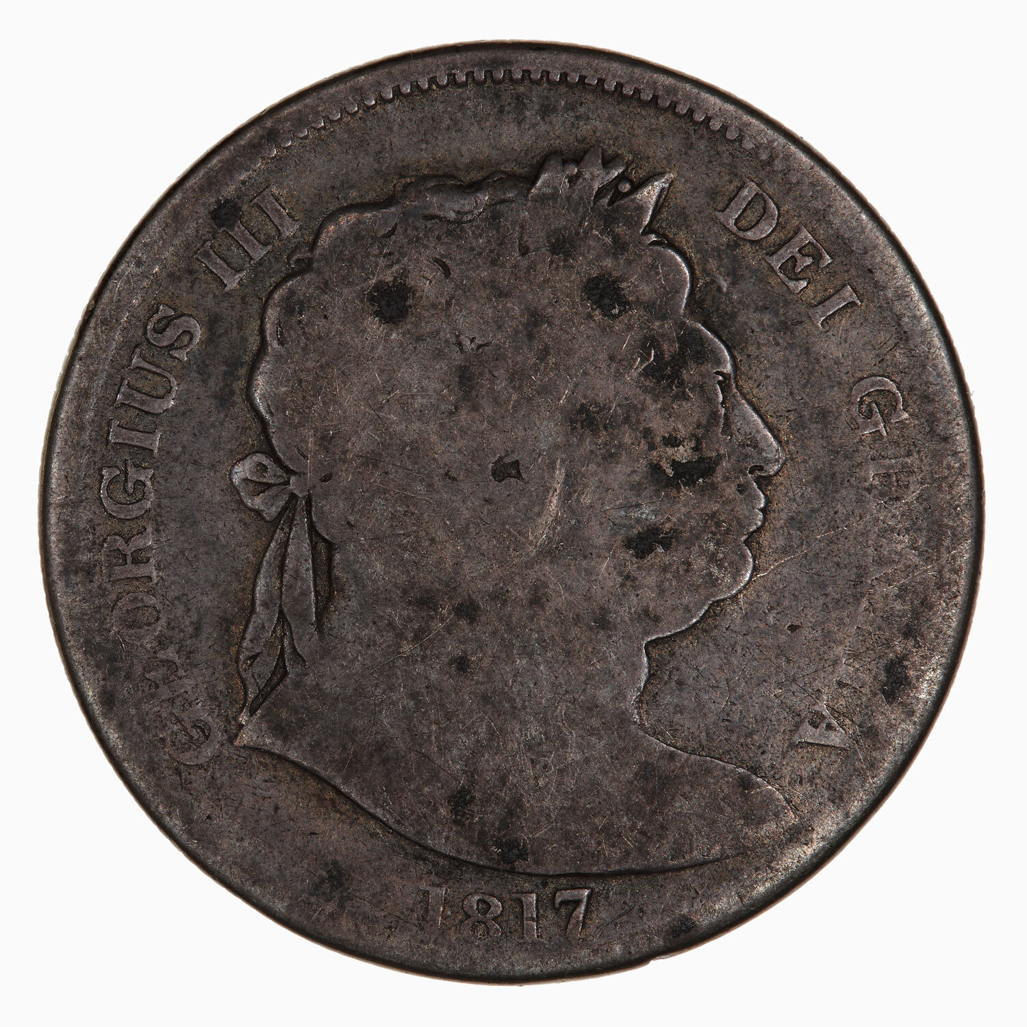 Laureate bust of the King facing left, undraped, around, GEORGIUS III DEI GRATIA, below, 1817