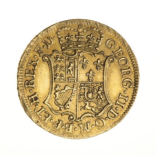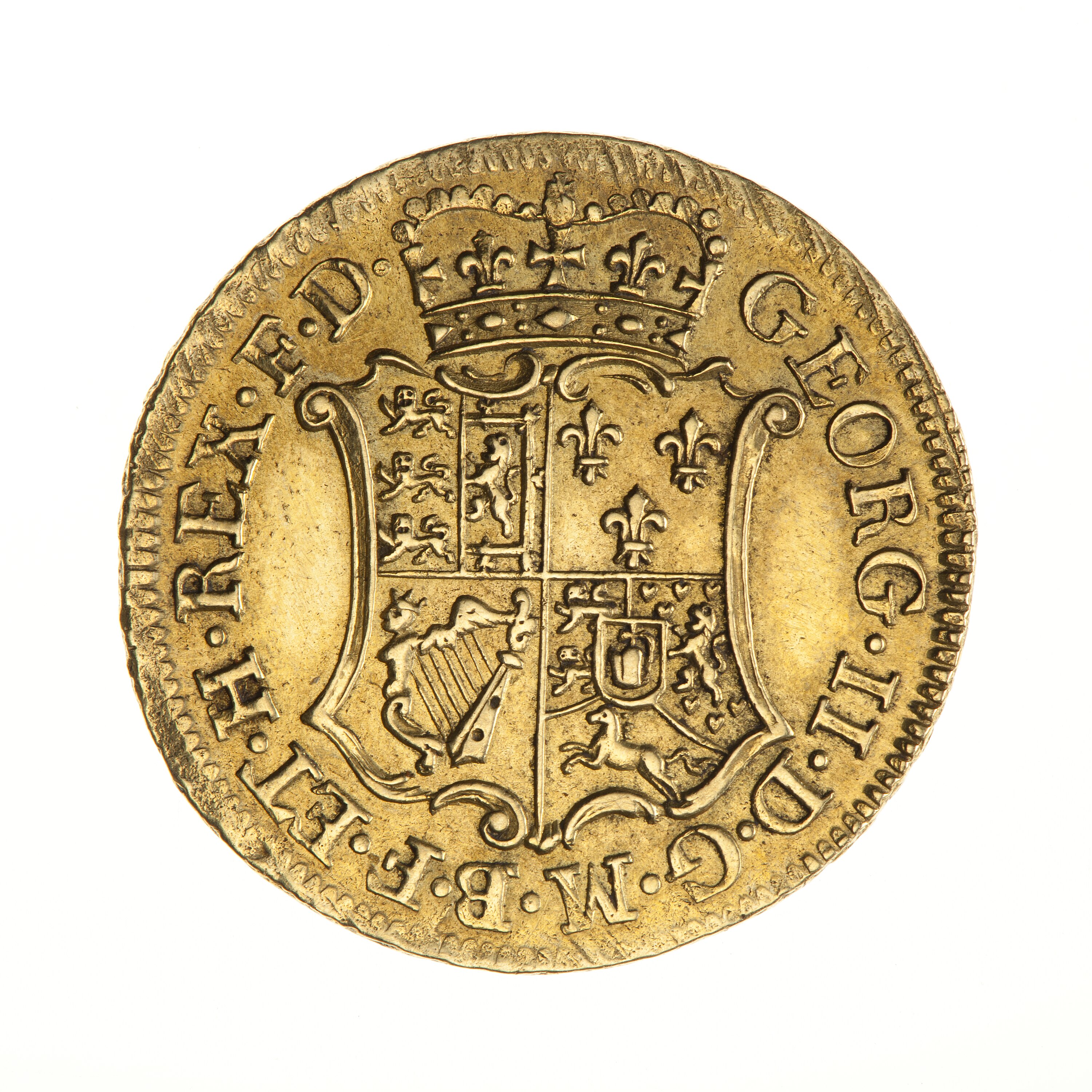 Crowned shield of arms; around, GEORG. II. D. G. M. B. F. ET. H. REX. F. D.