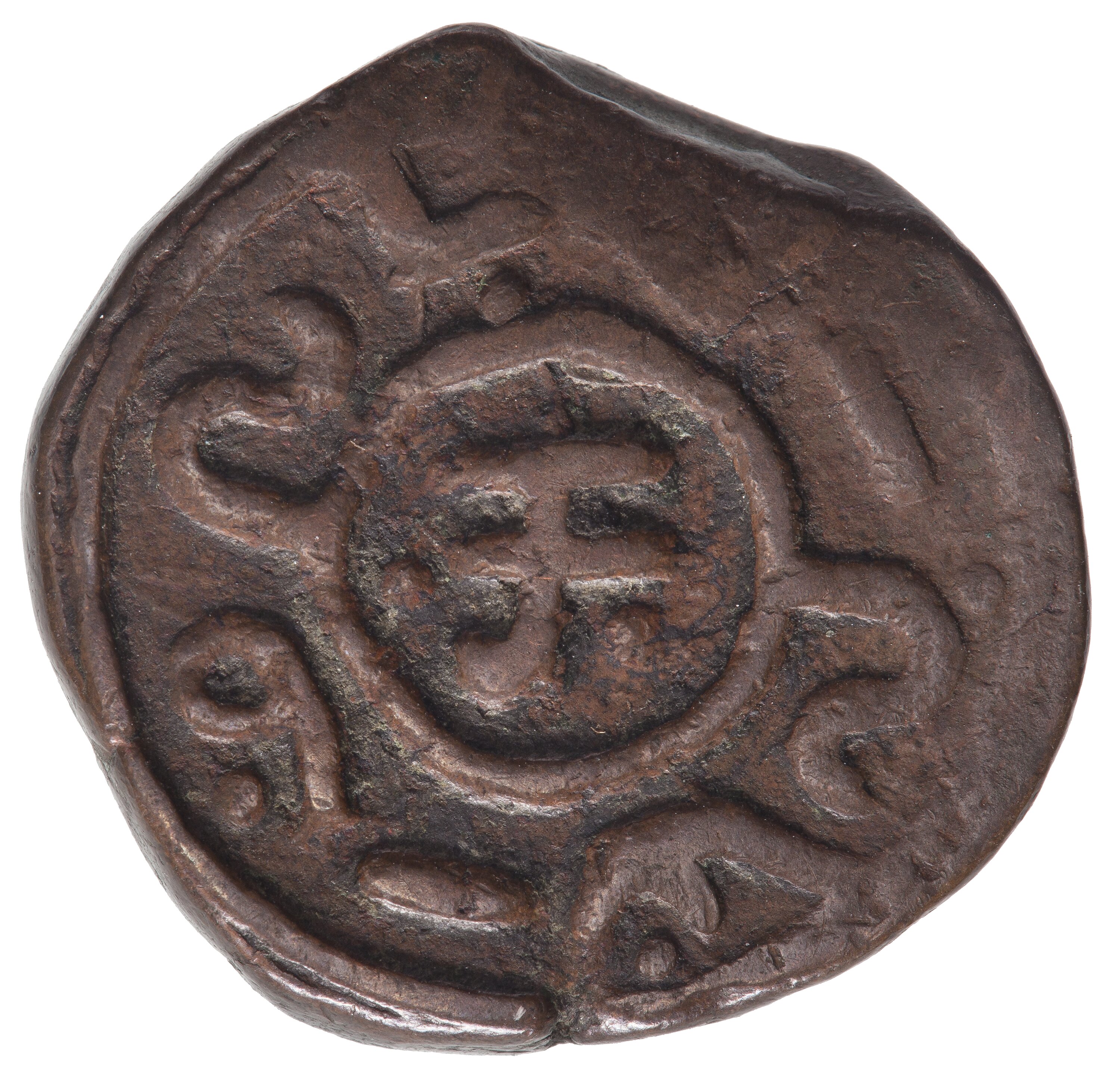 Paisa, India, Banswara Princely State, Anonymous Hammered Coinagend, (1870 AD). Mint not recorded. The legends on this coin is in a secret script believed to have been developed by the Maharaval Laksman Singh. The name of the Princely State, Banswara, is derived from 'bans', the bamboo forrest of the region.