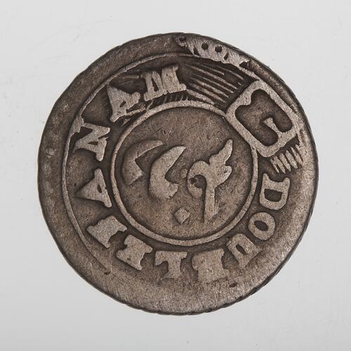 At centre, the denomination in Persian; around on buckled garter, DOUBLE FANAM