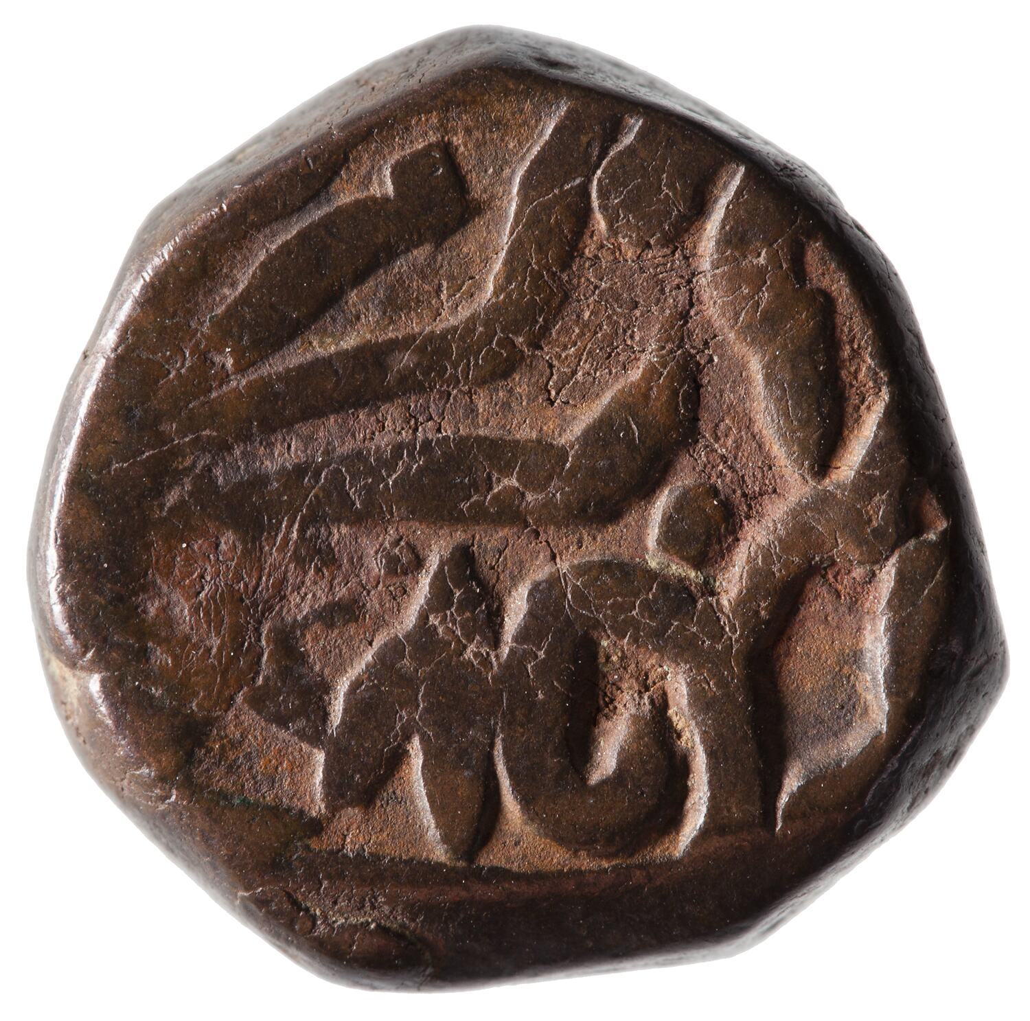 Hammered copper coinage possibly struck at the Sawai Jaipur mint in 1887 AD, Year 2 of the Maharaja's reign