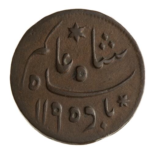 Legend in Persian script (translation: Emperor Shah Alam 1195)