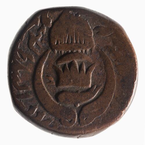 This simplified coat of arms was only used on the coinage during the reign of Amjad Ali Shah.