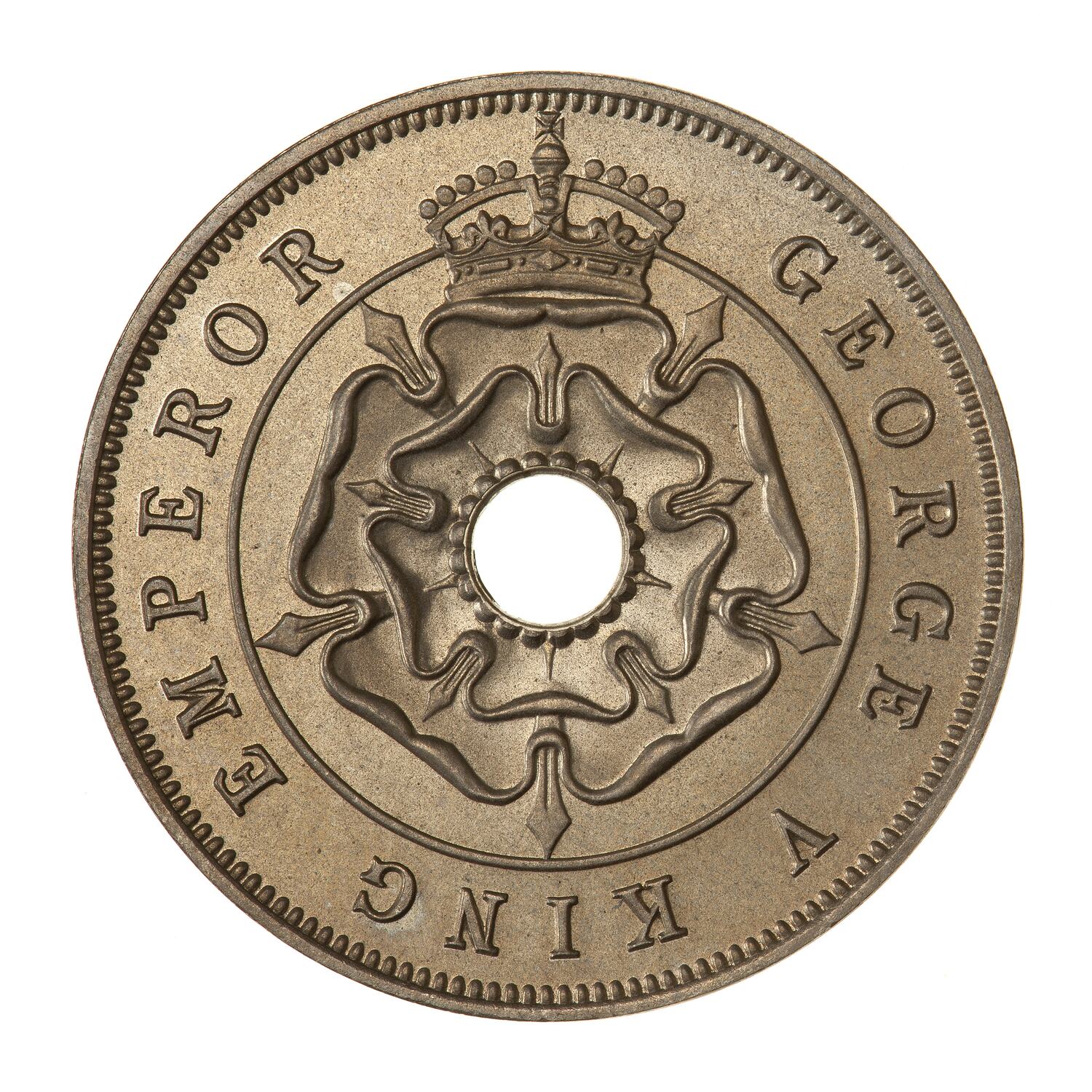 Around hole, a crowned rose; around, GEORGE V KING EMPEROR