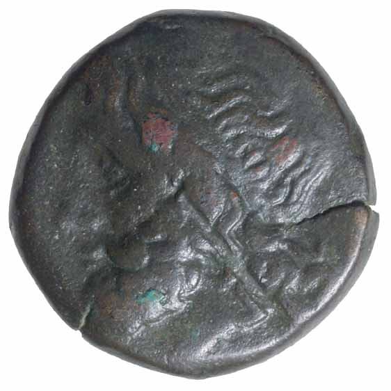 A copper coin issued by the city of Syracuse, Sicily, 275-215 BC