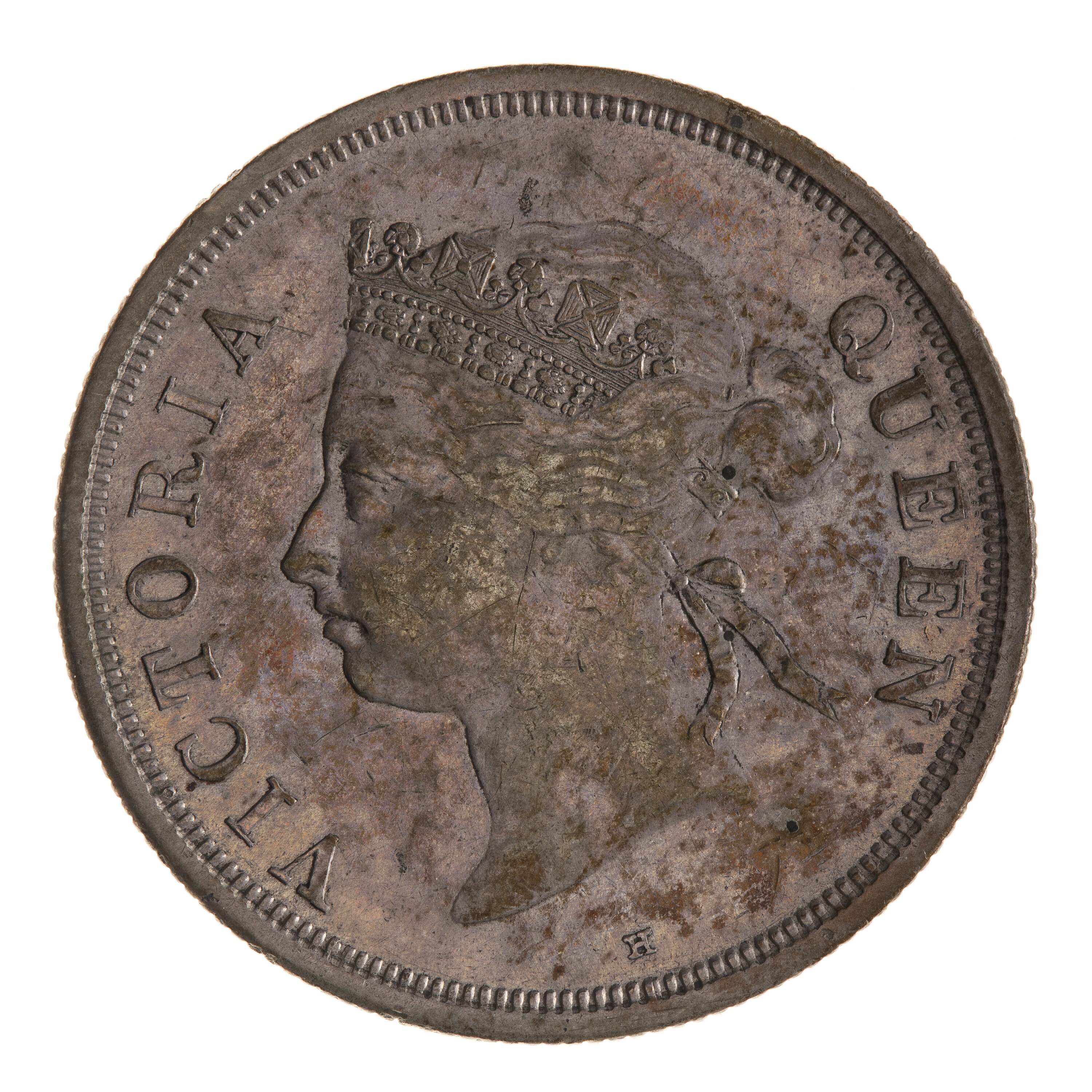 Head of the Queen wearing coronet facing left; around, VICTORIA QUEEN; mint mark, H, below neck truncation