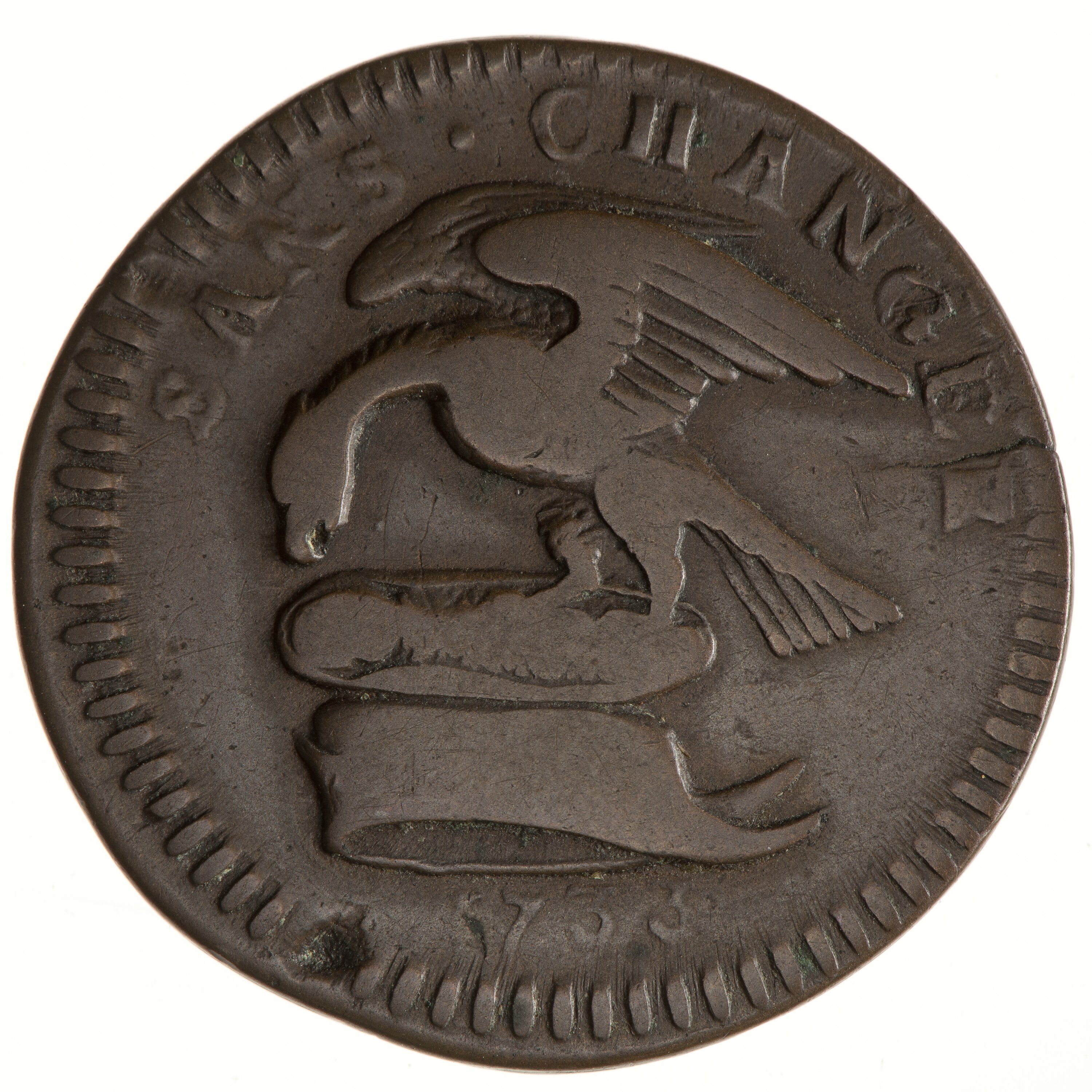 Struck on the Isle of Man by Amos Topping and Samuel Dyall between 15 January 1733 and 23 March 1734
