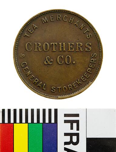 Obverse: CROTHERS & CO. TEA MERCHANTS GENERAL STOREKEEPERS Reverse: THE ORIGINAL CASH STORE MAIN ST. STAWELL