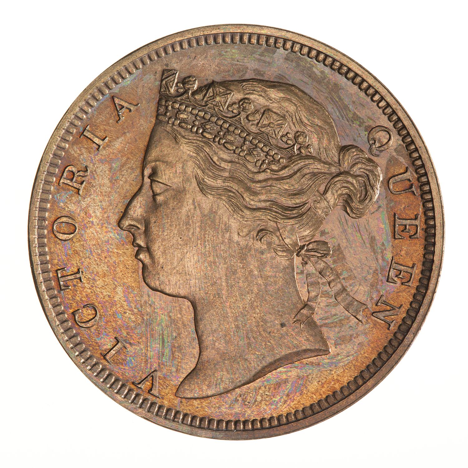 Diademed head of the queen facing left; around, VICTORIA QUEEN