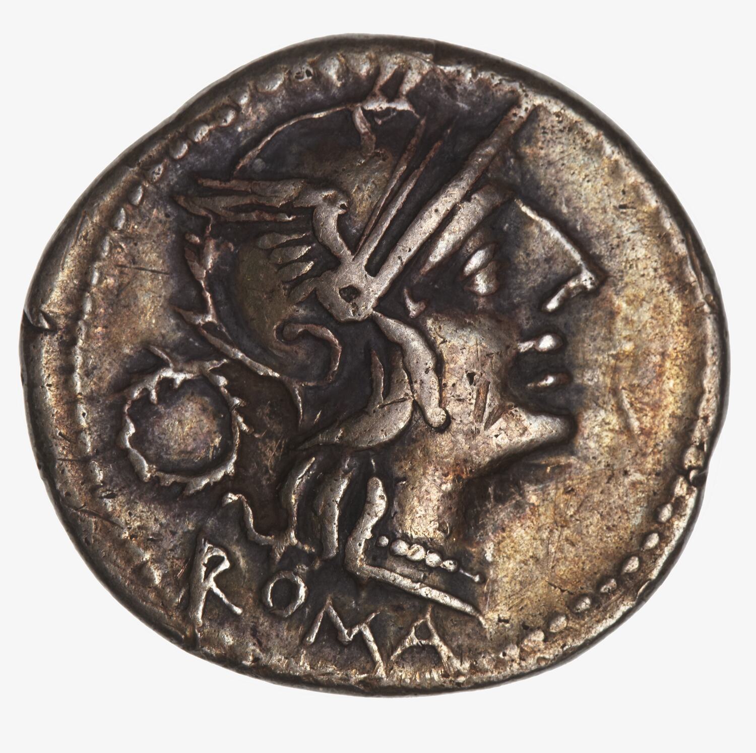 Denarius, Issued by Ancient Roman Republic, 128 BC