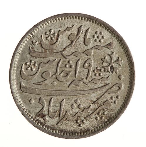 Persian legend without a hijri date (translation: Defender of the religion of Muhammad. Shah Alam. Emperor. Shadow of the divine favour, put his stamp on the seven climes)