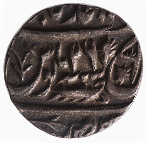 Part of a Persian legend in the name of Shah Alam II, with the date off the flan