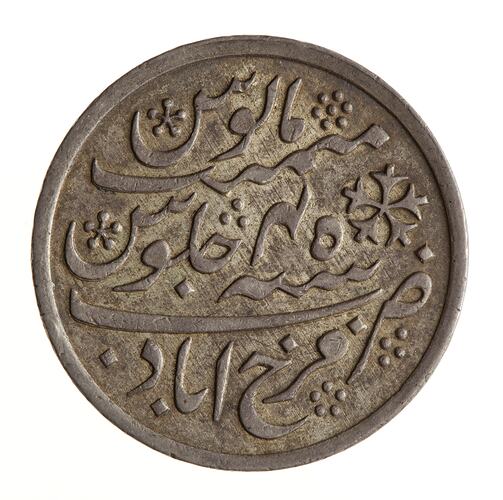 Persian legend (legend translation: Defender of the religion of Muhammad. Shah Alam, Emperor. Shadow of the divine favour, put his stamp on the seven climes)