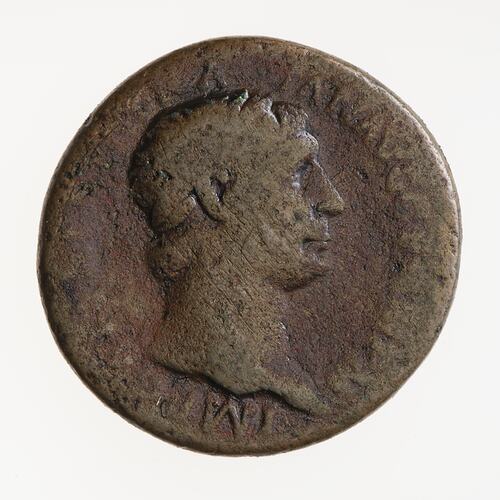 Copper As struck during the reign of the Emperor Trajan in the period 101 to 102 AD, Ancient Roman Empire. Minted by Rome. Trajan was Consul for the fourth time (COS IIII on this coin) in 101 AD and for the fifth time from 1 Jan. 103 AD. Therefore this coin was produced in the period 101 to 102 AD.
