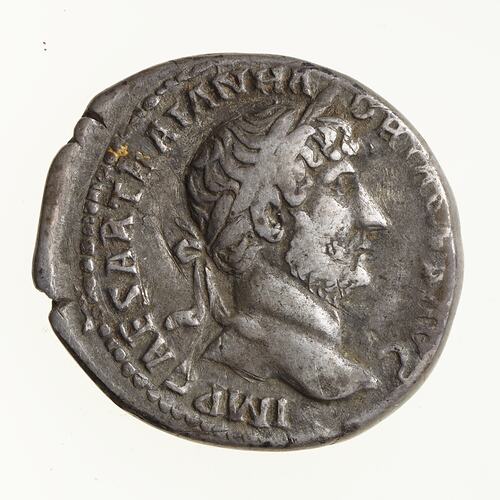 Laureate bust of Hadrian facing right; around, IMP CAESAR TRAIAN HADRIANVS AVG
