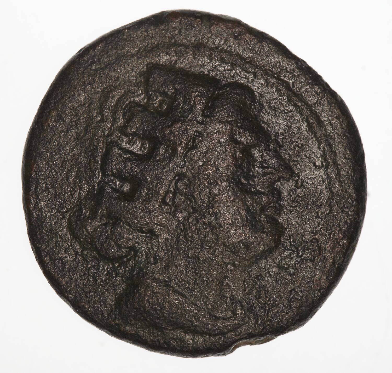 The female wearing the tureted crown on the obverse is thought to be the city-goddess of Rome. This is an issue from near the beginning of the Second Punic War (218-202 BC). Crawford places it with the introduction of the semilibral standard which he put in 217 BC.