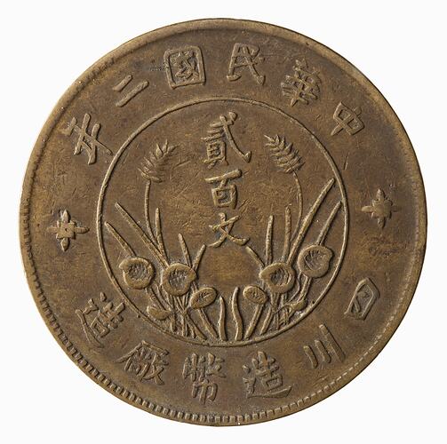 200 Cash, Issued by Szechuan Province, Republic of China, Yr. 2 (1913)