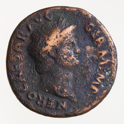 Copper As issued by the Emperor Nero probably in 65 AD, Ancient Roman Empire. Minted by Rome.