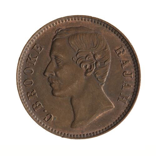 Sir Charles Johnson Brooke, depicted on the obverse of this coin, became Rajah of Sarawak after the death of James Brooke in 1868.