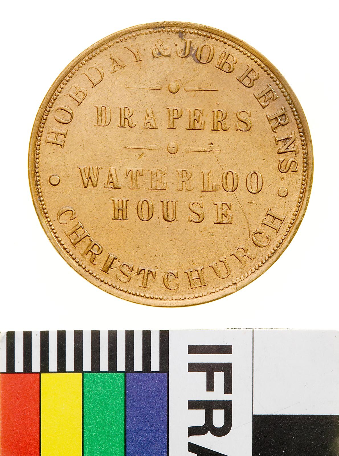 Obverse: HOBDAY & JOBBERNS DRAPERS WATERLOO HOUSE CHRISTCHURCH Reverse: ADVANCE CANTERBURY STOKES & MARTIN MELBOURNE