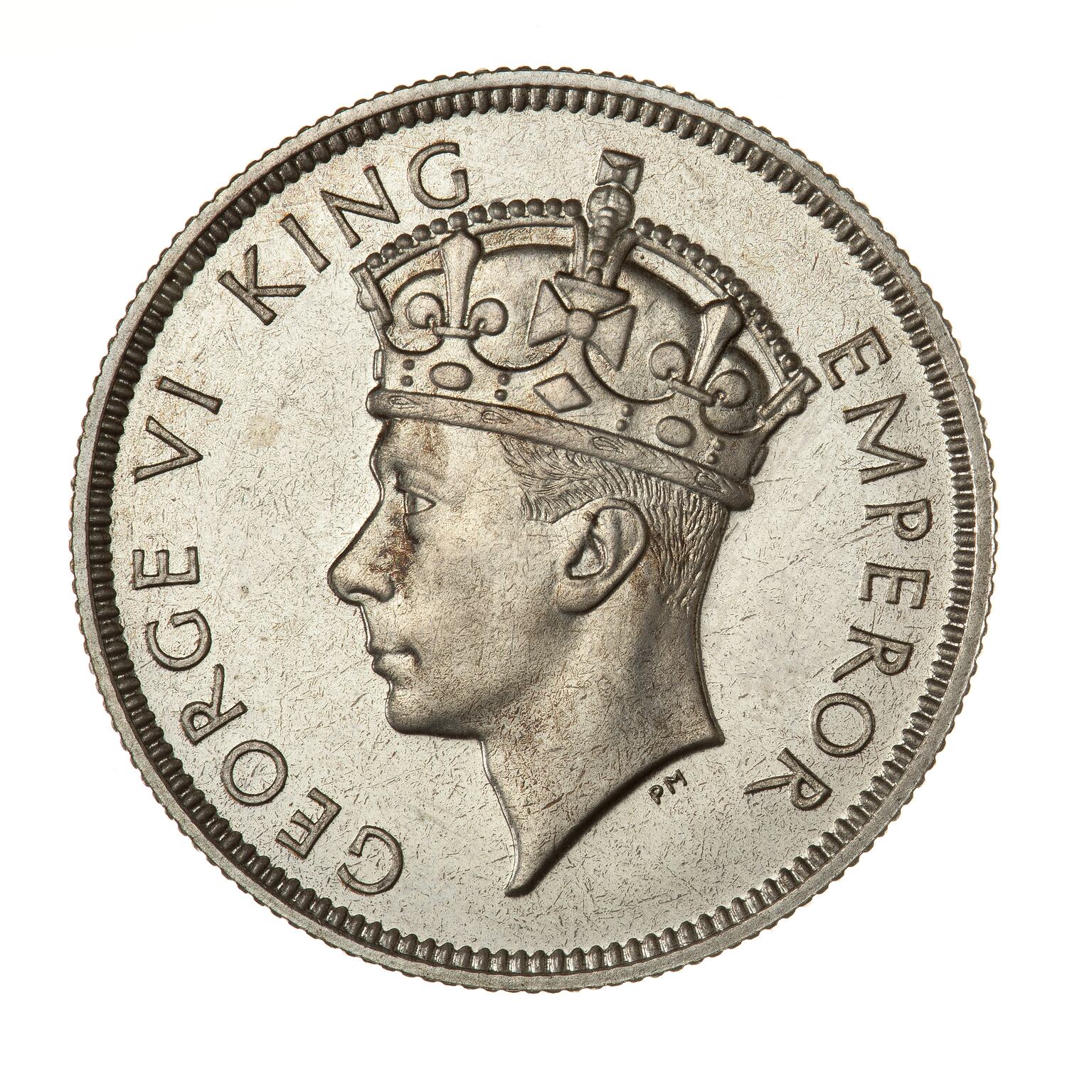 Crowned bust of the King facing left, the bust extends to the edge of the coin; around, GEORGE V KING EMPEROR