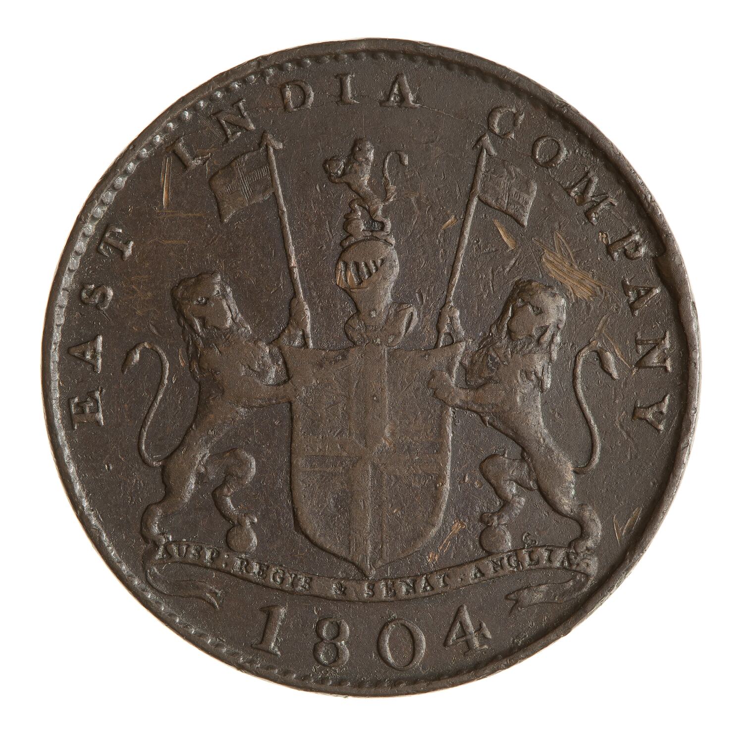 Arms of British East India Company; around above, EAST INDIA COMPANY; below, 1804