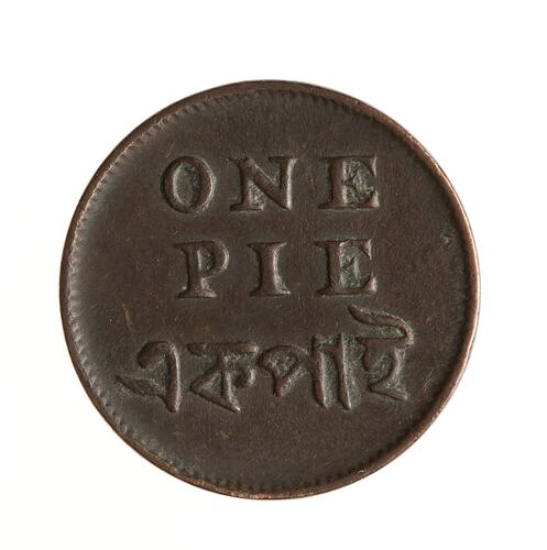 Denomination 'ONE PIE' in English and Bengali scripts.