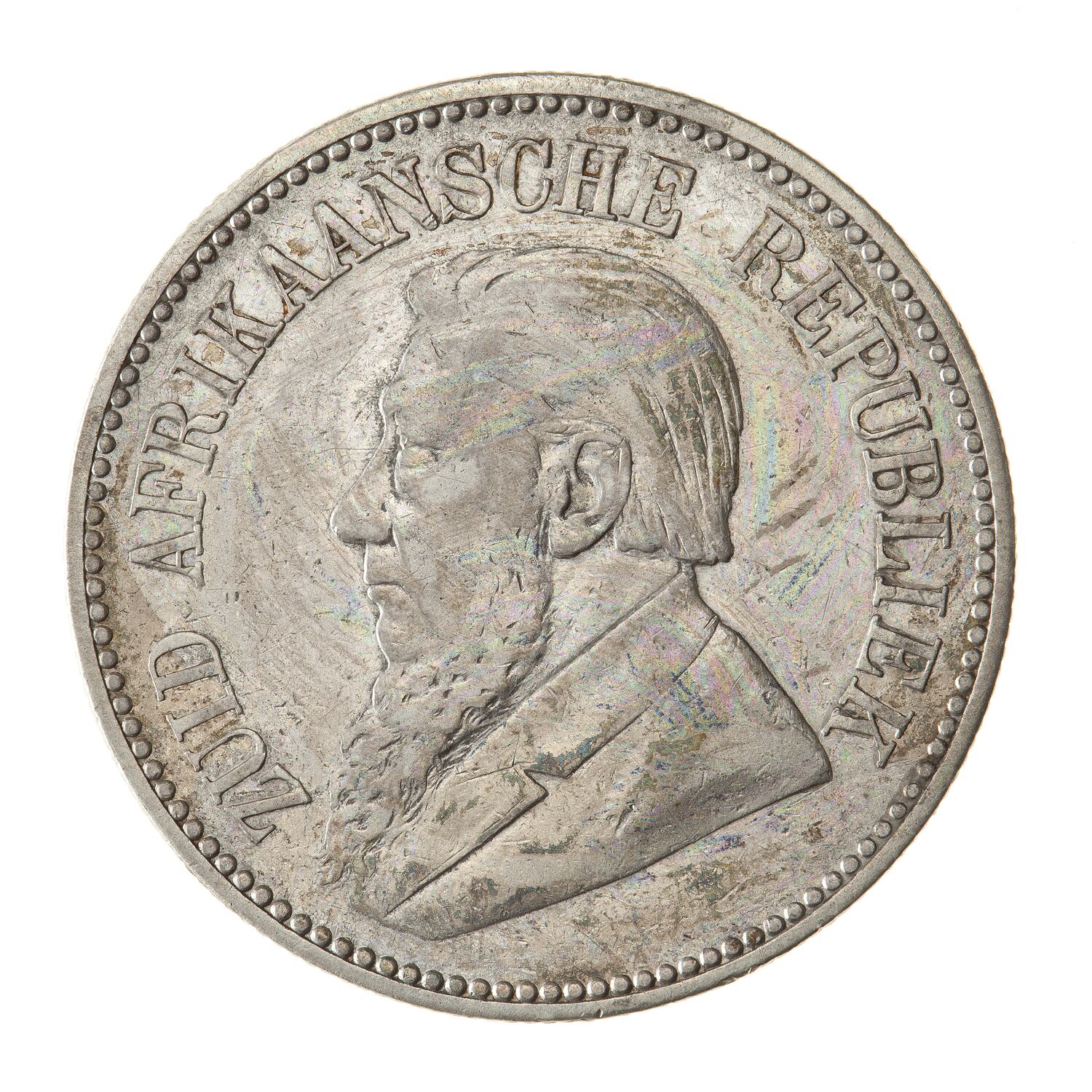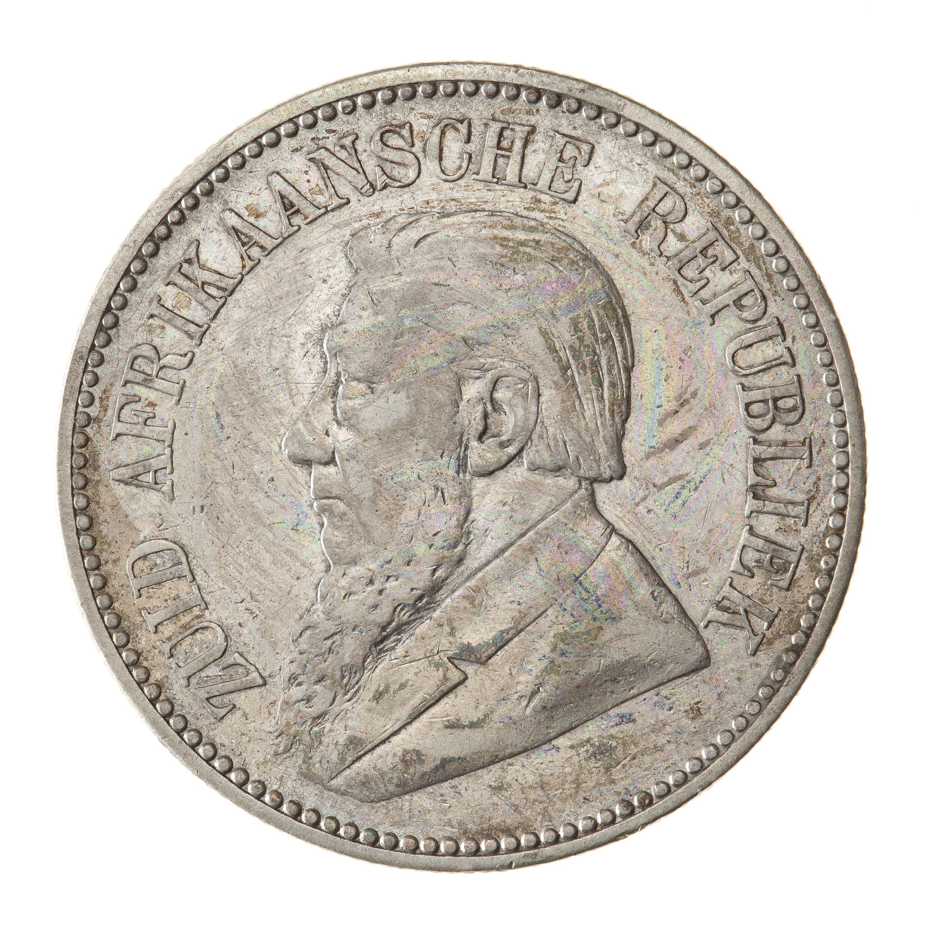 Draped bust of Paulus Kruger facing left; around, ZUID AFRIKAANSCHE REPUBLIEK