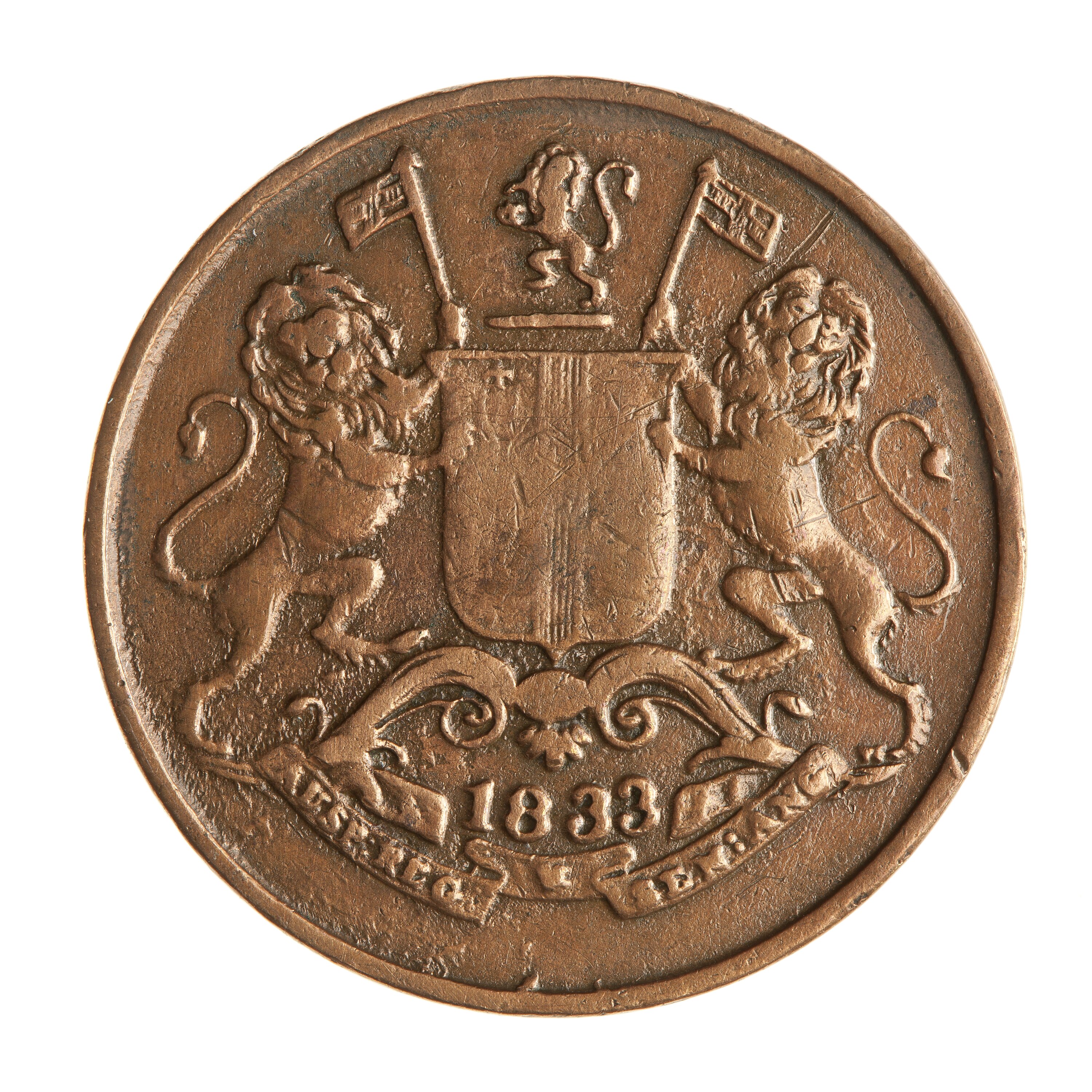 1/2 Anna, Issued by Bombay Presidency, India, 1833 (1249 AH)