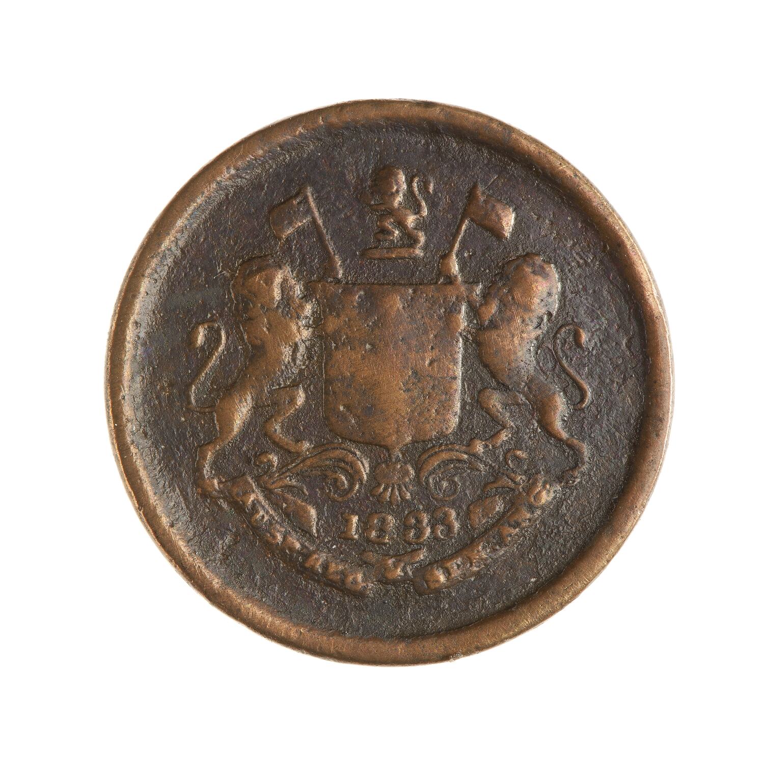 Arms of British East India Company; below shield, 1833