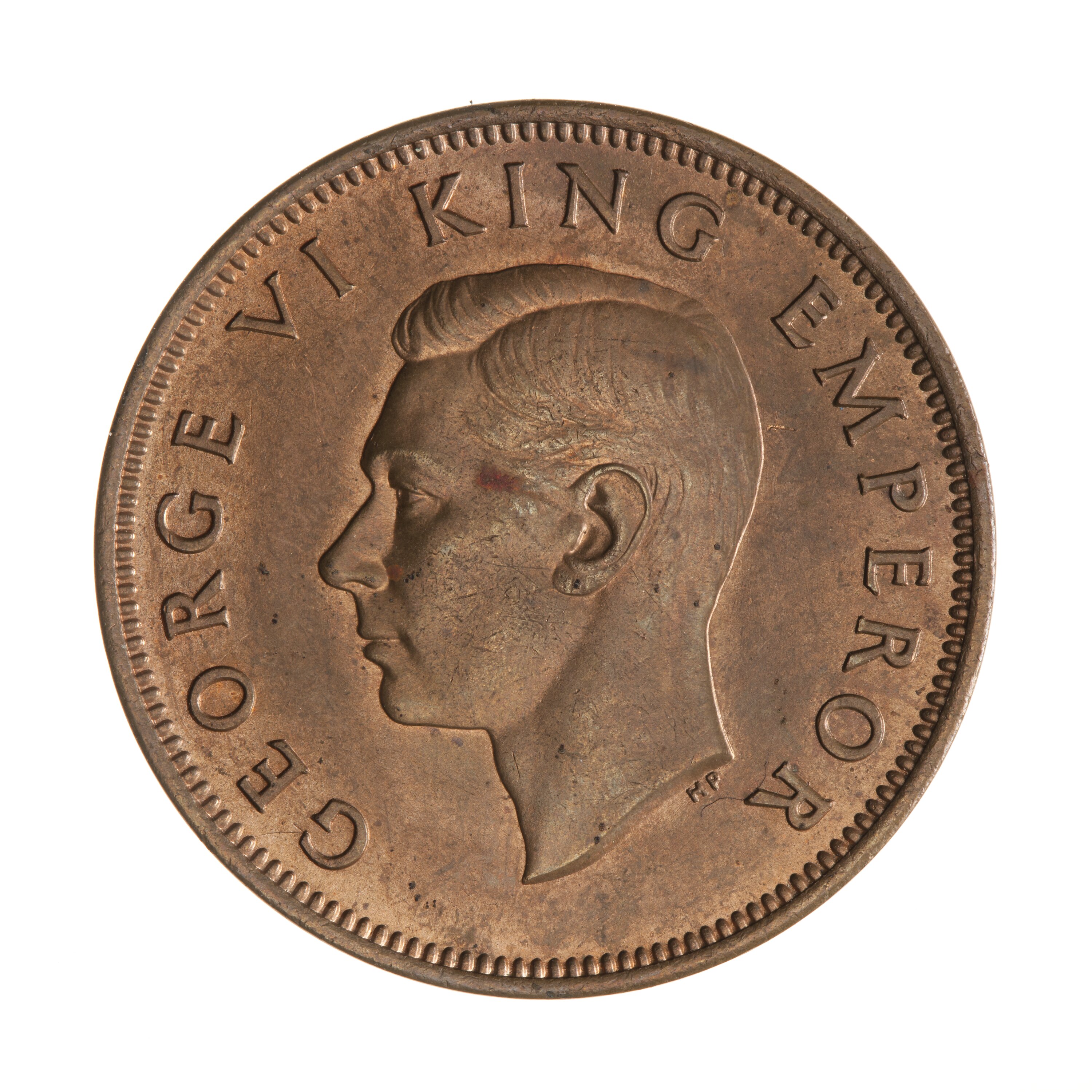 'To commemorate the centenary of the signing of the Treaty of Waitangi in 1840 by which the native chiefs ceded the sovereignty of New Zealand to the British Crown, the New Zealand Government authorised the issue of a half-crown of special design. This occasion was also marked by the issue of penny and halfpenny coins to complete the series of New Zealand coins of distinctive design.' Annual Report of the Deputy Master and Comptroller of the Royal Mint, 1939, p. 5.