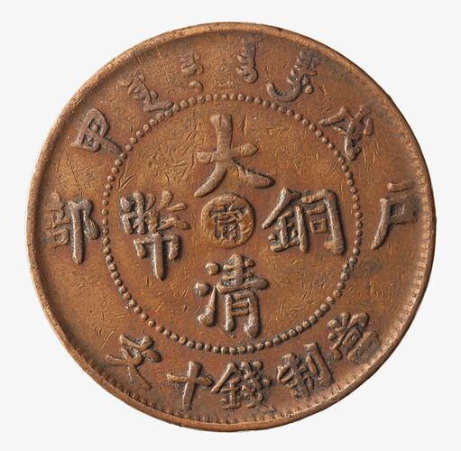 10 Cash, Issued by Jiangnan (Kiangnan), China, 1907