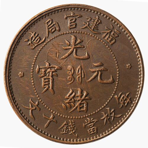 10 Cash, Issued by Fukien (Fujian) Province, China, 1901-1905