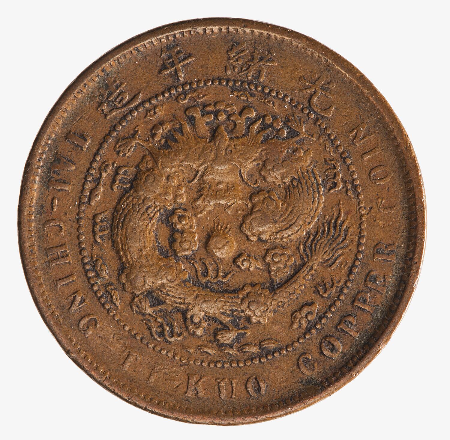The Annual Report of the Royal Mint, London for 1906 records of the Chinese 10-cash coin that, from all Chinese mints, over 10,000 million were in circulation. Earlier strikings were of low copper content though by 1905 a 95% standard was being achieved. The coins were only worth 3 or 4 cash but were forced into circulation at the 10 cash level. The number produced and the fact that they were not recieved in payment of taxes or government revenue saw them heavily discounted in circulation. On 22 August 1905 the Emperor approved a regulation that would establish a central mint at Tientsin (now Tianjin) with four branch mints at Nanking (now Nanjing), Tientsin, Wuchang and Canton (now Guangzhou). Expansion of all other mints was forbidden with an intention to close them when possible. The official banks were to watch money-changers and markets, with any attempt to raise or lower the value of the coins to be reported to the Board of Revenue or Provincial authorities. Reference: Royal Mint Annual Report 1906, pp.26-28