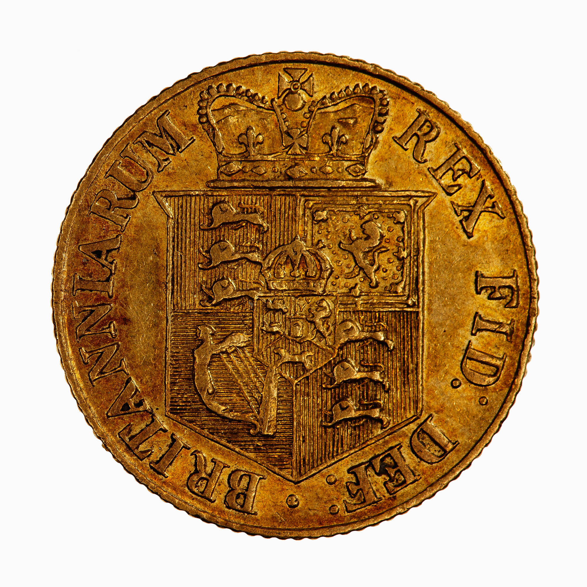 The half-sovereign was introduced in 1817 as part of a re-coinage at the end of the Napoleonic wars. From 1816 the silver coins no longer contained their intrinsic value of silver they are therefore termed a "token coinage". The gold content of the sovereign was however retained at full metal value. The half-sovereign was current at 10 shillings.