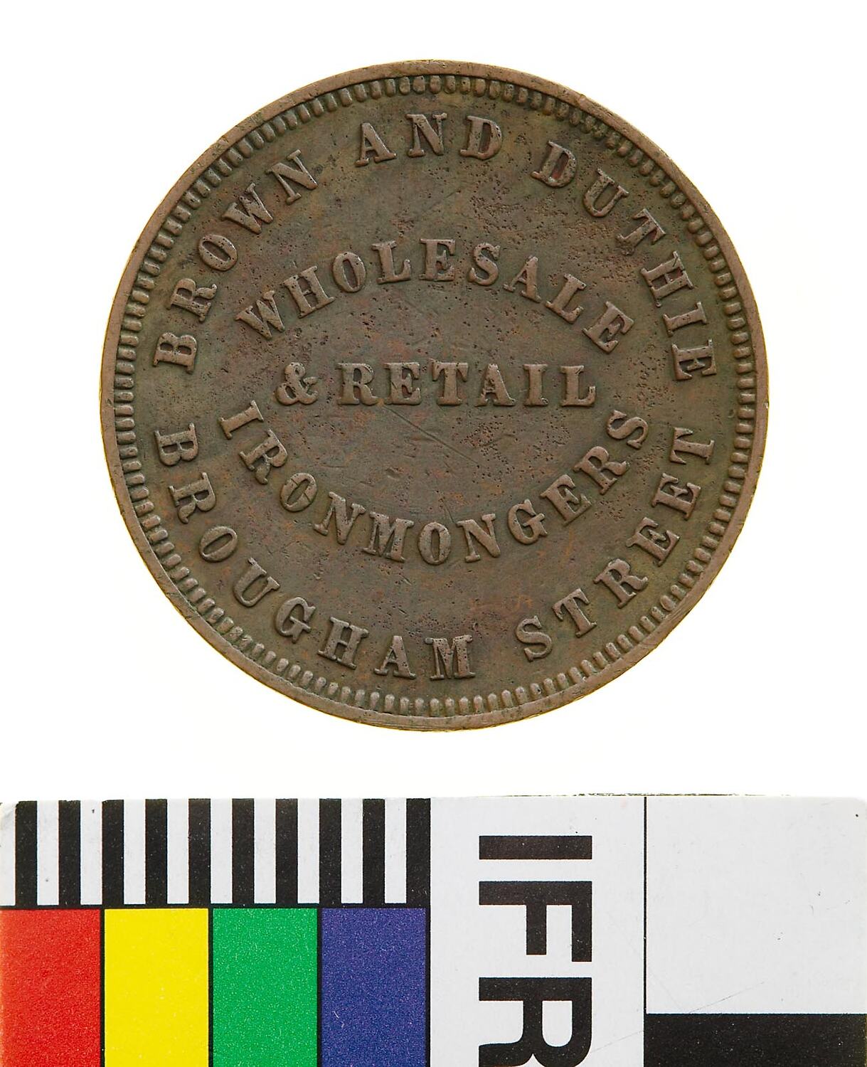 Legend in five lines: BROWN AND DUTHIE / WHOLESALE / & RETAIL / IRONMONGERS / BROUGHAM STREET