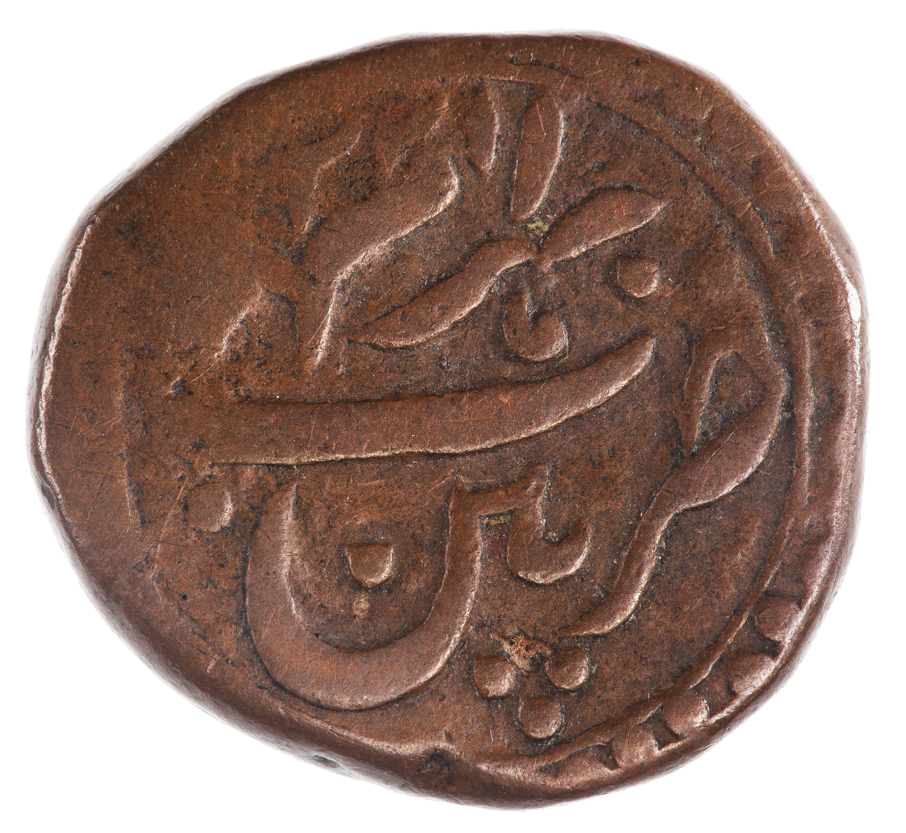 Hammered copper coinage struck at the Puttun (Patan) mint in 1225 AM (1796 AD)