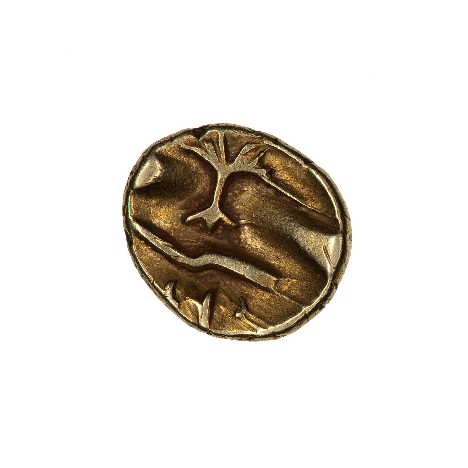 This coin is thought to have been struck by a group of Gallo-Belgic invaders who entered Southern England about 80 BC. The date is largely based on the discovery of a worn example of this coin type buried in a hoard during the invasion of Julius Caesar - worn in the 50s therefore struck earlier- about 80 BC.