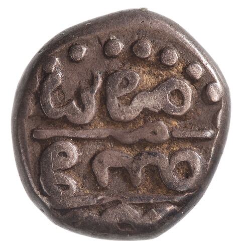 Jackson (1909) records this size of coin a 1/16th rupee. Krause states it is a 1/3 Pavali. The Pavali was a 1/4 rupee so the coin would be a 1/12 rupee. This piece weighs 0.88 g arguing that the Krause denomination is correct as the rupee should be about 11g (if the coin were 1/16th rupee the rupee would weigh 14g). Jackson records that the word 'Mayili' on the reverse may be connected to an old Kaunada word meaning 'token' although the weight seems full.